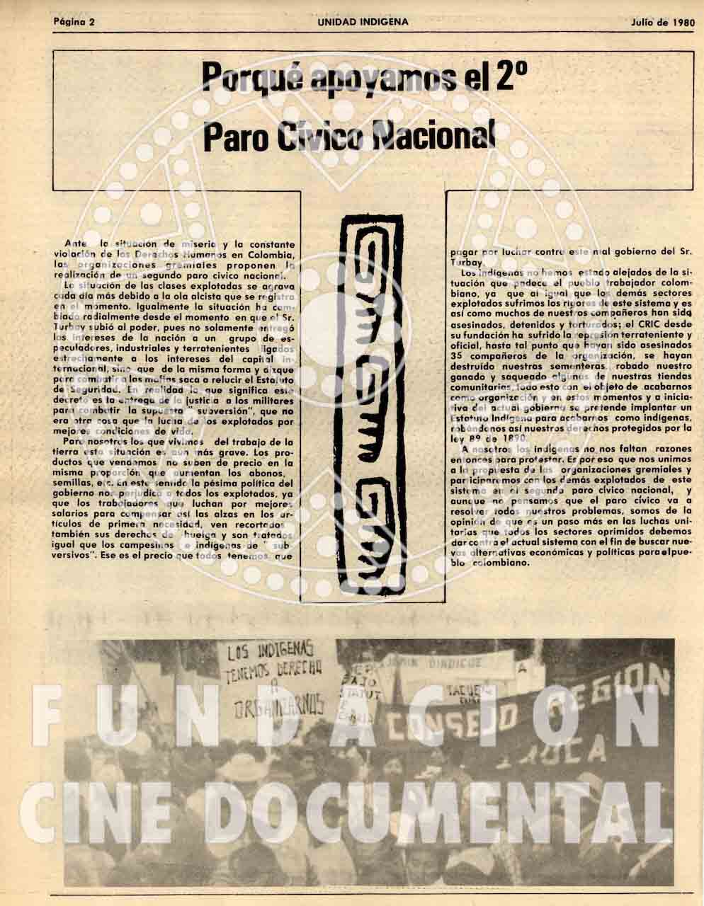 TEMÁTICOS: 2° Paro Cívico Nacional, Derechos Humanos, Estatuto de Seguridad, Subversión, Carestía, CRIC, Estatuto Indígena, Ley 89 de 1890,