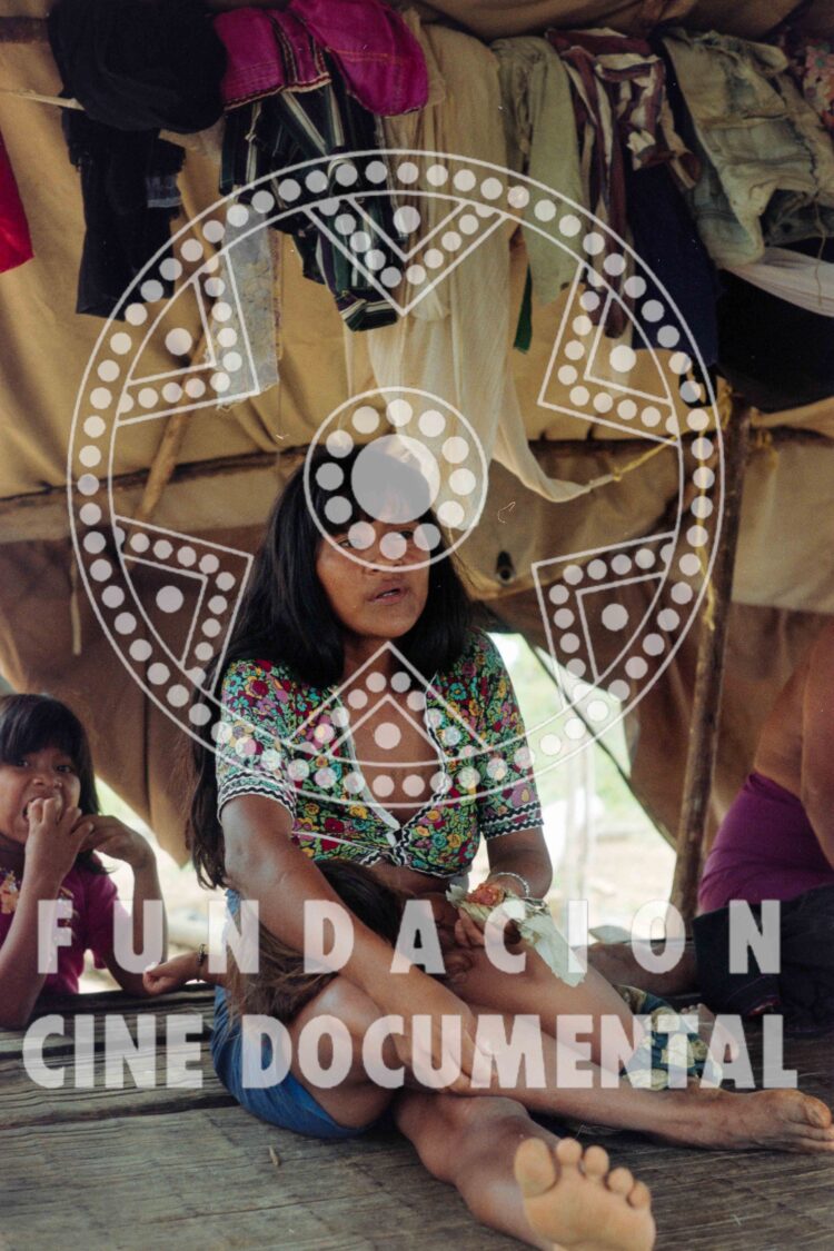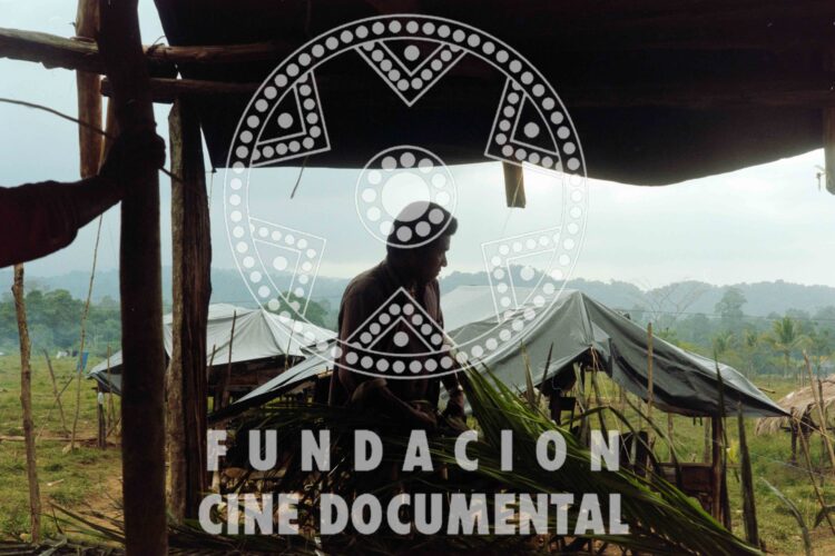 CÓDIGO: F0314 AUTOR: Marta Rodríguez DESCRIPCIÓN: Fotografía de un indígena embera organizando unas hojas de palma que funcionan como techo de las casas. PERSONA JURÍDICA/NATURAL/ROL: TOPONÍMICOS: Cacarica – Chocó TEMÁTICOS: Indígenas. Emberas. Desplazamiento. Resistencia. Cacarica. CRONOLÓGICOS: 1997 – 1999 SOPORTE: TRIACETATO FORMATO: 35mm CROMÍA: Negativo Color