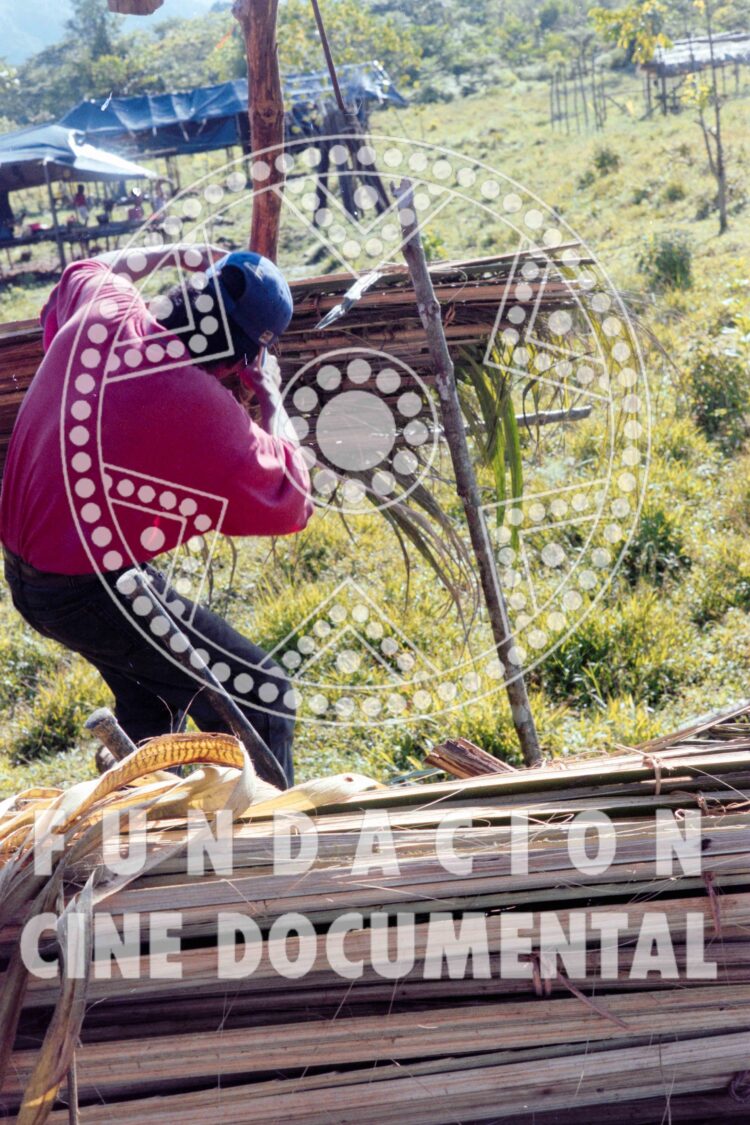 CÓDIGO: F0294 AUTOR: Marta Rodríguez DESCRIPCIÓN: En la imagen puede verse como dos hombres están atando el techo de la construcción. También se puede apreciar cómo es el orden de la madera. En la imagen, el hombre de la derecha está mirando su trabajo mientras que el hombre que está ubicado en el centro está […]